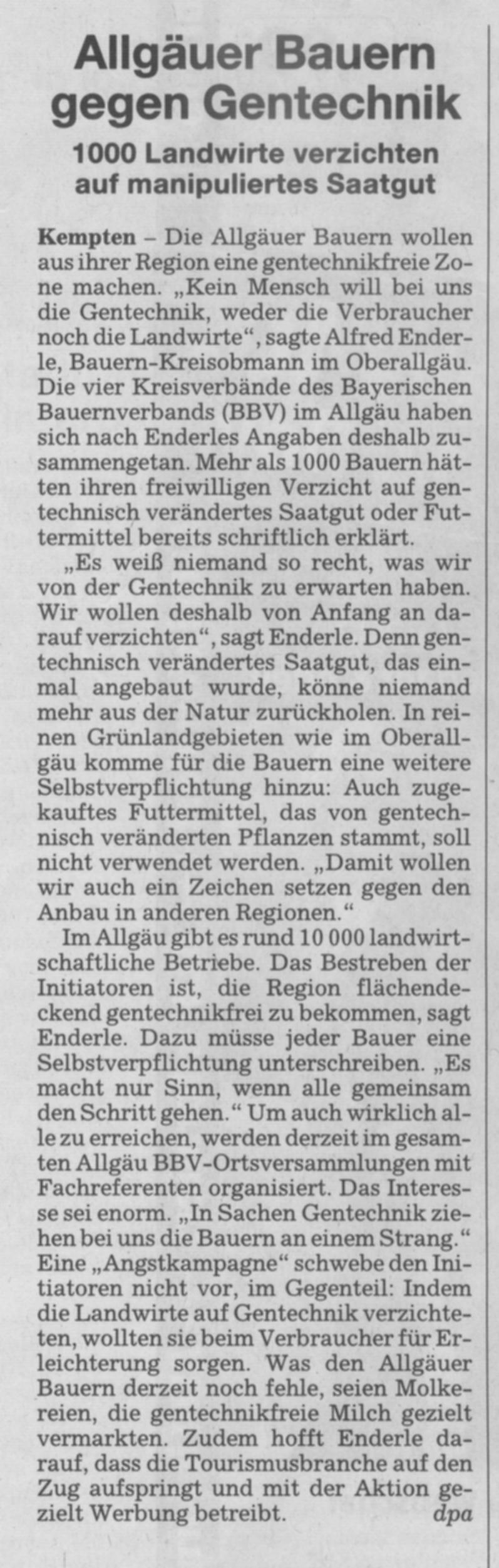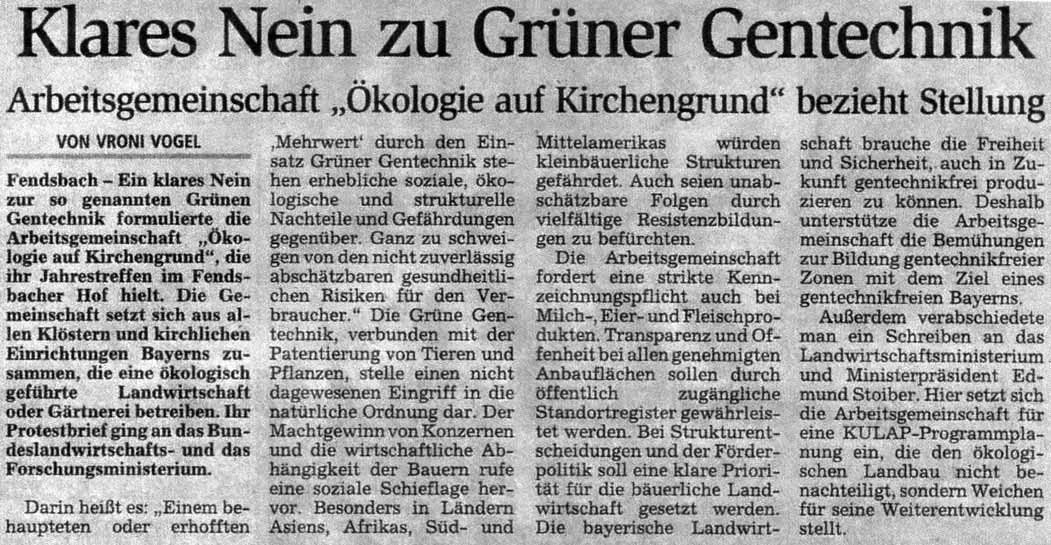 Bayerischen Bauernverbandes die kommerzielle Nutzung der Gentechnik