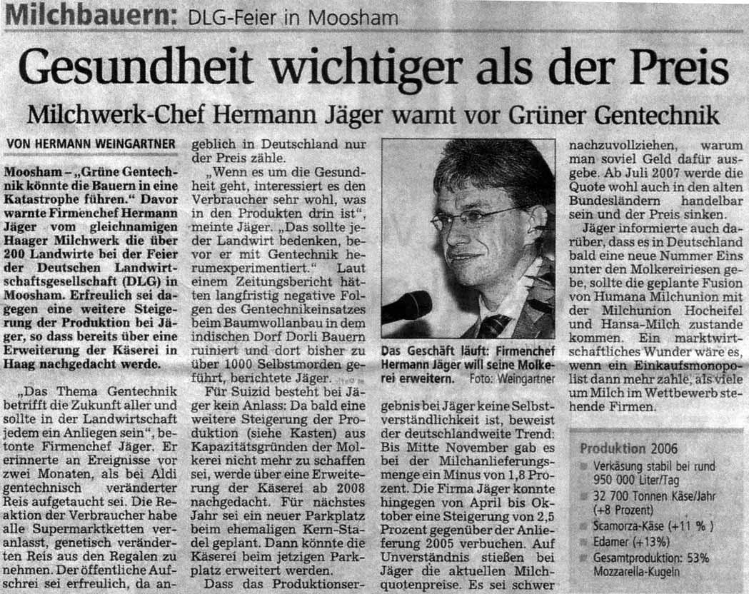 in der Landwirtschaft ab. Solange die genannten Forderungen nicht